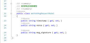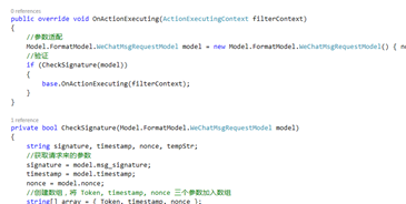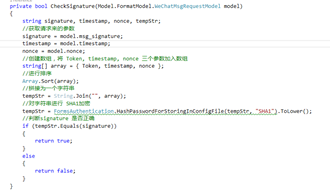 private bool CheckSignature(Model.FormatModel.WeChatMsgRequestModel model)