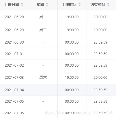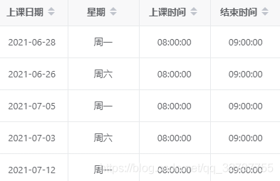 (例子,只用來展示數(shù)據(jù)結(jié)構(gòu))假如總共5節(jié)課時(shí),從6-25日開始排課,每周一、周六上課: