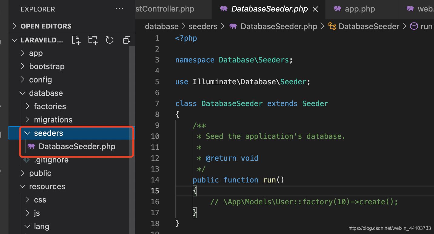 例:以paper為例,則名稱應(yīng)該為PaperTableSeeder