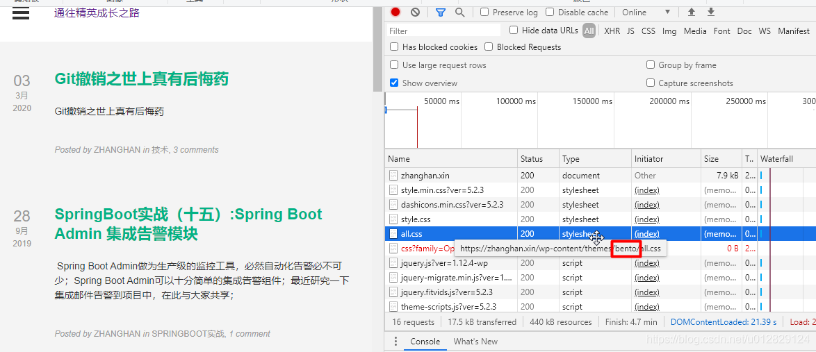 查看當前WordPress使用主題(通過其他加載正常css可以看出當前使用bento主題)