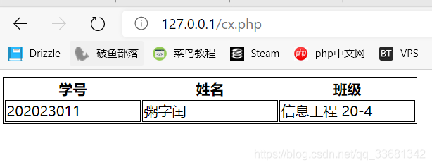 echo "tr>th>學(xué)號/th>th>姓名/th>th>班級/th>/tr>";