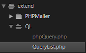 #首先應(yīng)該下載TP5框架,然后在extend里面建立一個(gè)文件夾命名為QL,再去官網(wǎng)下載QueryList,然后把phpQuery.php 和 QueryList.php 兩個(gè)文件放在QL文件夾下,如圖: