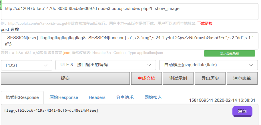 再去修改payload的文件中的值,然后再去訪問,發(fā)現(xiàn)什么也沒有返回,然后嘗試 /../d0g3_fllllllag 然后base64編碼 去訪問就會返回flag