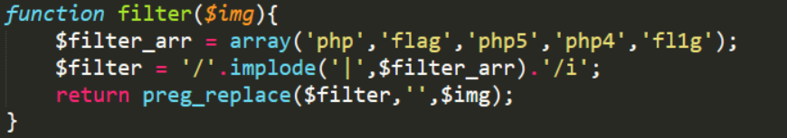 紅色部分是我們想要注入的,這道題的過濾函數(shù)有三個 ,但是導(dǎo)致長度變化的過濾是這個