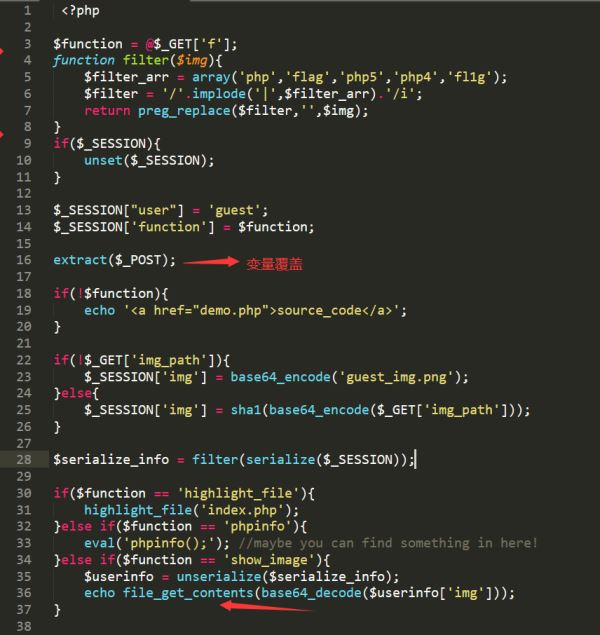 很顯然答案在 d0g3_f1ag.php里面,關(guān)鍵是我們怎么去讀取他的源碼 ,可以看到最后一排的會獲取 ['img'] 中的 的源碼,我們僅需要覆蓋img的值將他變成d0g3_f1ag.php就行。