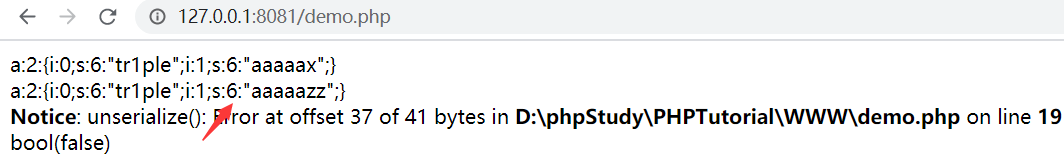 第三排是反序列化過后的到的值,此時原本的aaaaaa的值已經(jīng)被我們覆蓋。