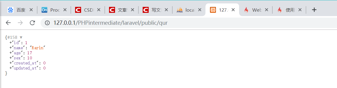 為了和上面的區(qū)分一下,我把print_r換成了var_dump,他會輸出成一個true,證明新增成功了。