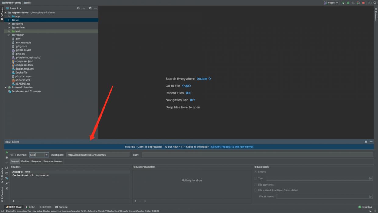我也是昨晚看了黃島主的直播后學(xué)會的這個方法,今天中午趁著休息時間,把這個技巧分享給大家。就是大家在調(diào)試 Hyperf 的時候,可能總需要做一些服務(wù)的重啟,重新點擊 postman 的接口請求按鈕,查看調(diào)試的結(jié)果是否正常,這篇文章就是教大家如何在 PhpStorm 中完成這一系列的操作。