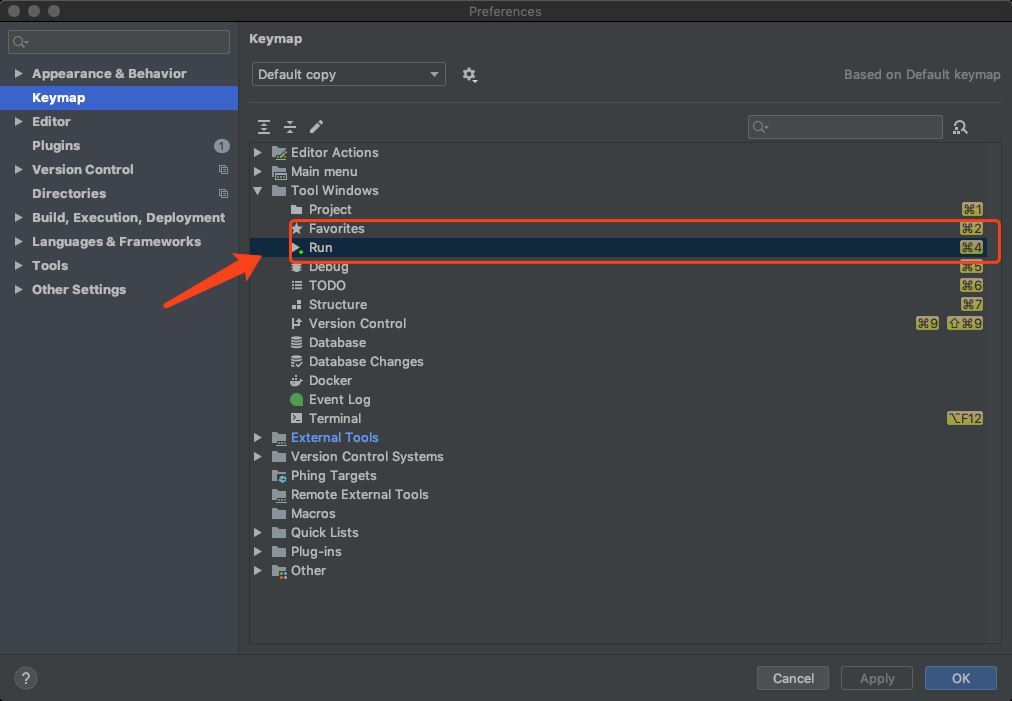 使用快捷鍵,快速重啟(這里我的方法可能不是最簡便的,如有更簡便的請大家改進~)打開 phpstorm 的設(shè)置,點擊左側(cè) Keymap ,查看 Tool Windows 下的 Run 快捷鍵是什么,這里我用的是Mac,如圖: