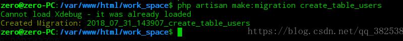 輸入命令:php artisan make:migration create_table_users