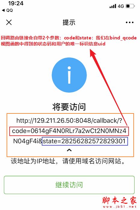 點(diǎn)擊繼續(xù)訪問,得到callback回調(diào)函數(shù)返回的結(jié)果并渲染到手機(jī)html頁面上