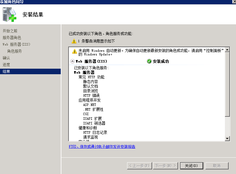 此時已安裝成功,關閉即可,打開IIS管理器,如下圖