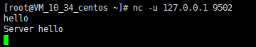 使用netcat連接UDP服務(wù),輸入hello,服務(wù)器返回hello即測試成功(CentOS):