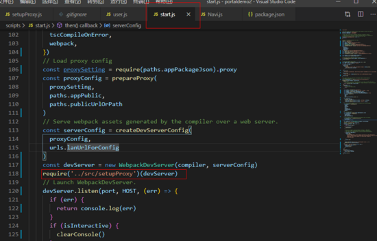 require('../src/setupProxy')(devServer) //注意路徑是否正,是你剛才建的那個文件