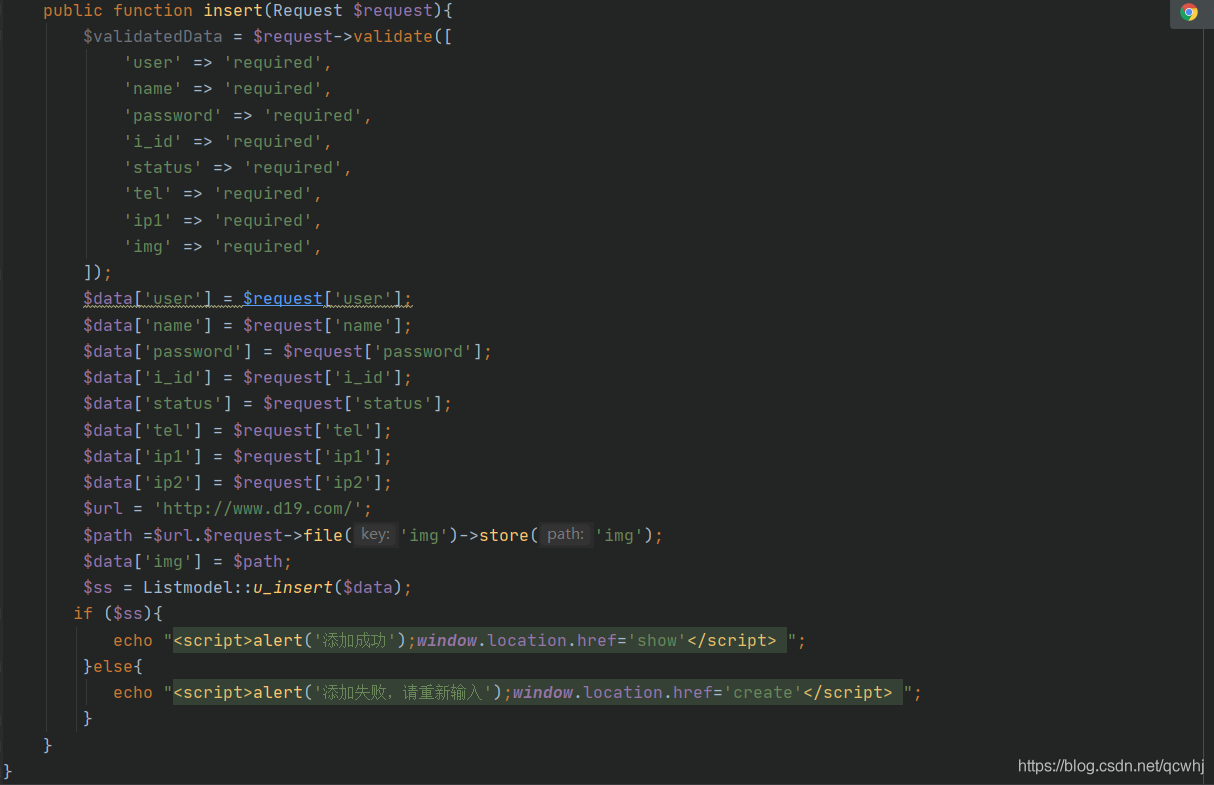 public function insert(Request $request){