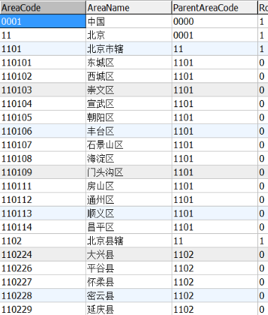 比如說(shuō)北京吧,北京的代號(hào)是11,它下面的北京市副代號(hào)就11, 北京市的主代號(hào)是1101,北京市下面的地區(qū)副代號(hào)就是1101,調(diào)地區(qū)的時(shí)候可以根據(jù)主代號(hào)查詢和它相同的副代號(hào),就能查詢出來(lái)