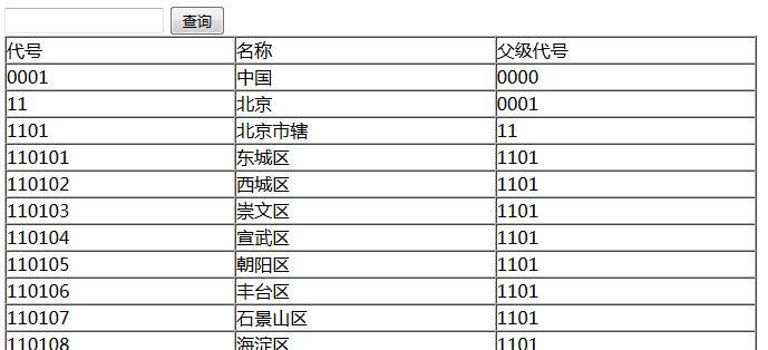 {br> //循環(huán)顯示的代號(hào)、名稱、父級(jí)代號(hào)