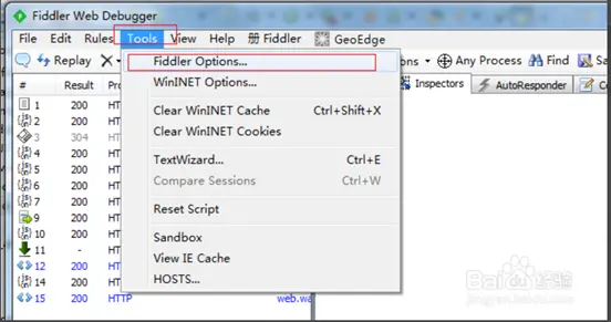 打開菜單欄中的 Tools > Fiddler Options,打開“Fiddler Options”對話框: