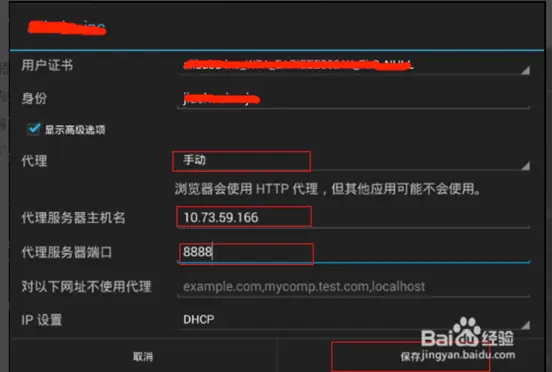 在“代理服務(wù)器主機名”后面的輸入框輸入電腦的ip地址,在“代理服務(wù)器端口”后面的輸入框輸入8888,然后點擊“保存”按鈕