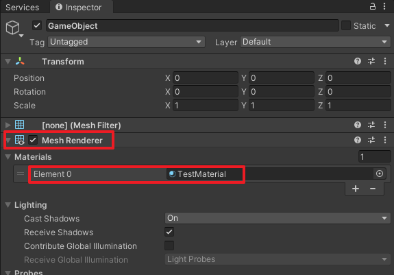 創(chuàng)建一個空物體,掛上MeshFilter和MeshRenderer組件。