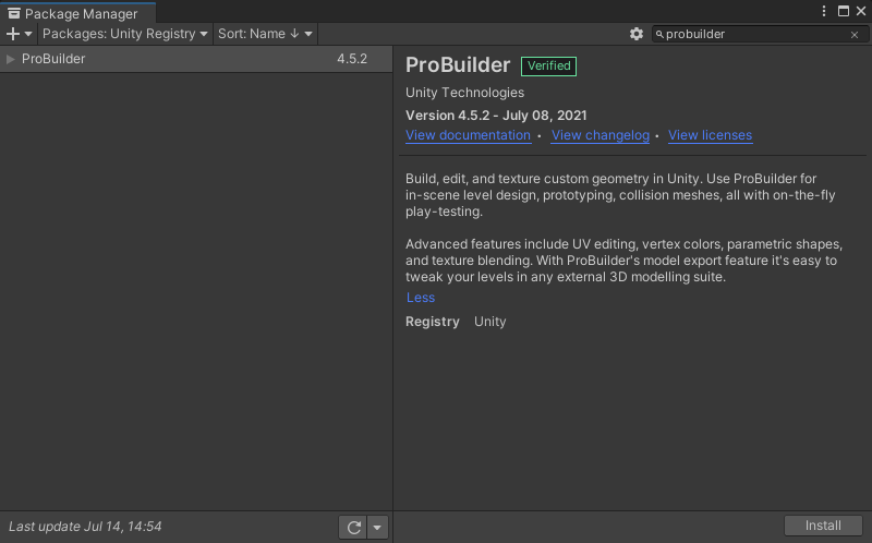 Unity官方提供了一個可以用來創(chuàng)建和自定義幾何體的工具ProBuilder,我們可以在Unity的Package Manager中下載到這個插件,