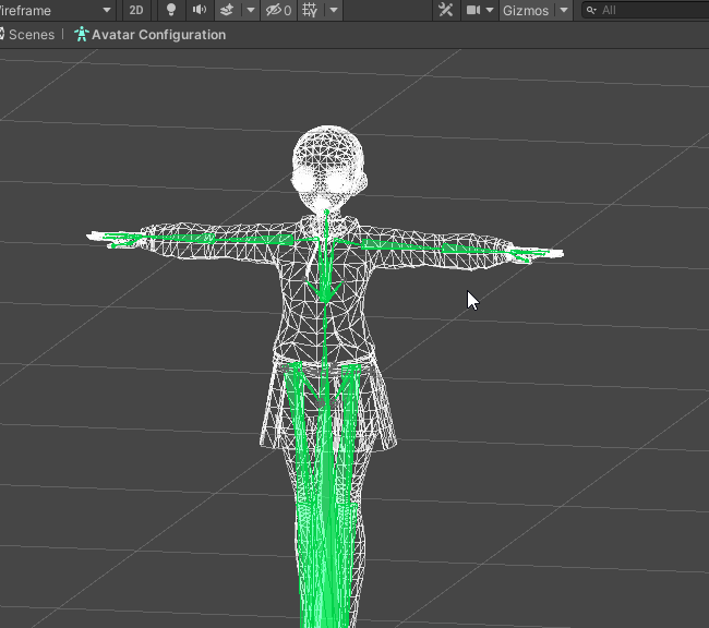將Scene視圖的模式設(shè)置為Wireframe,如下