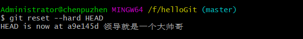 注意,這里和沒有--hard是有區(qū)別的了啦,有了參數(shù)--hard,直接把工作區(qū)的內(nèi)容也修改了,不加--hard的時候只是操作了暫存區(qū),不影響工作區(qū)的,--hard一步到位,不加--hard需要分開執(zhí)行,兩步操作??瓷先ゼ恿?-hard方便好多,但是我不建議大家使用這個,因為這個殺傷力有點強。萬一手殘刪掉了一些自己不想刪的就沒有后悔藥了。所以慎用吧