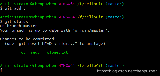 執(zhí)行命令后,我們再看看當前的git 狀態(tài),如圖: