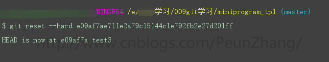 辦法其實(shí)還是有的,只要上面的命令行窗口還沒有被關(guān)掉,記錄還是在,使用命令git reset --hard commit_id可以回退到指定的版本,比如當(dāng)前例子,我們找到那個(gè)test3的commit id是e09af7ae711e2a79c15144c1e792fb2e27d201ff,然后輸入下面指令就回來了