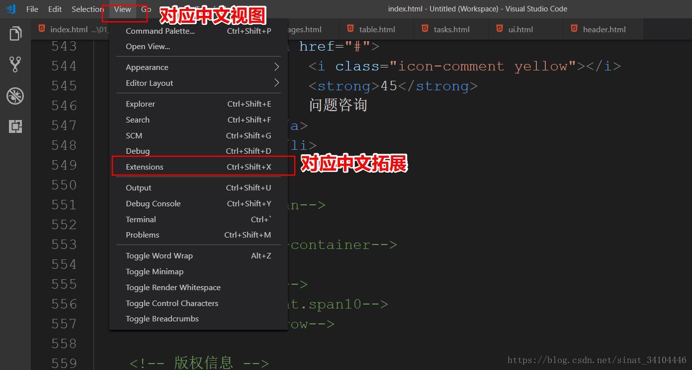 2.如果沒有顯示左邊的工具欄,也可以在View中找到Extensions進(jìn)入插件安裝