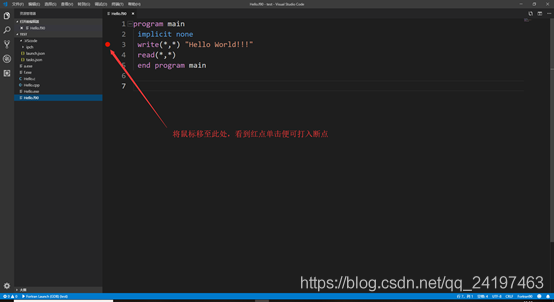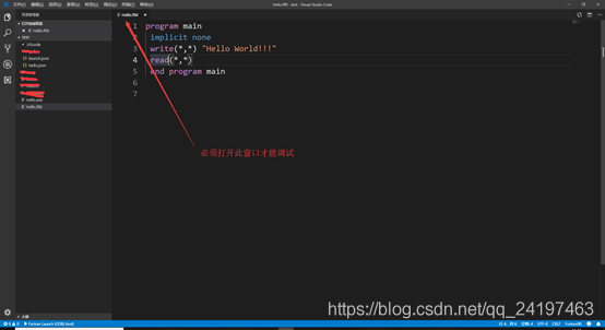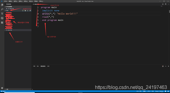 在VS code中新建一個(gè)文件夾test,要記住新建的文件夾的地址,然后新建一個(gè)文件Hello.f90,雙擊此文件輸入下列語(yǔ)句