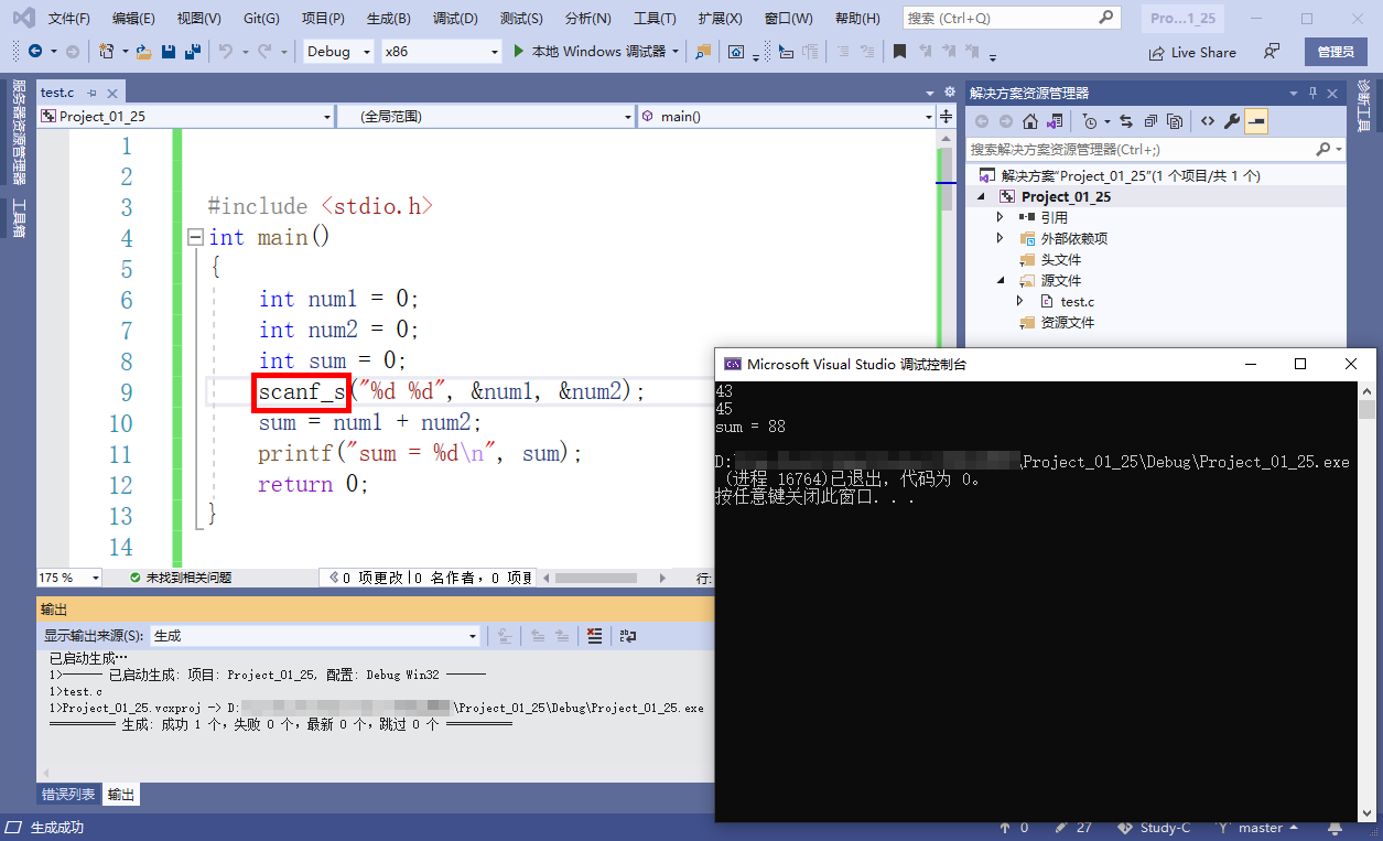其實我是不推薦大家使用這種方法的,因為scanf_s它是vs編譯器特有的,也就是說它不具有跨平臺性/可移植性,在其他編譯器上無法識別運行