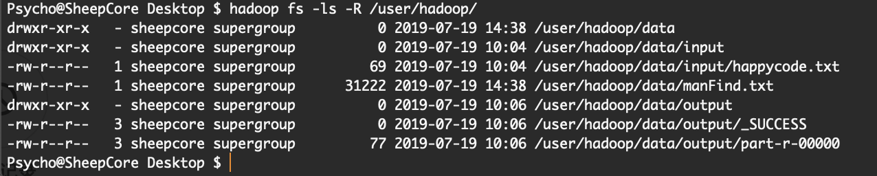 Warning: hadoop fs -rm "-rf" 不能連在一起寫,需要一個個給出:hadoop fs -rm-r -f