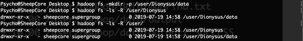 Usage:hadoop fs -mkdir [-p] paths>