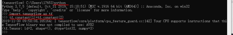 輸出tf.Tensor:id=多少都行,shape=(),dtype=int32,numpy=3>即表示成功,警告可忽略。
