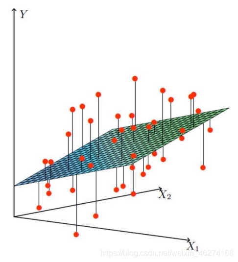 找到最合適的一條線(xiàn) (想象一個(gè)高維 ) 來(lái)最好的擬合我們的數(shù)據(jù)點(diǎn). 如下圖所示: