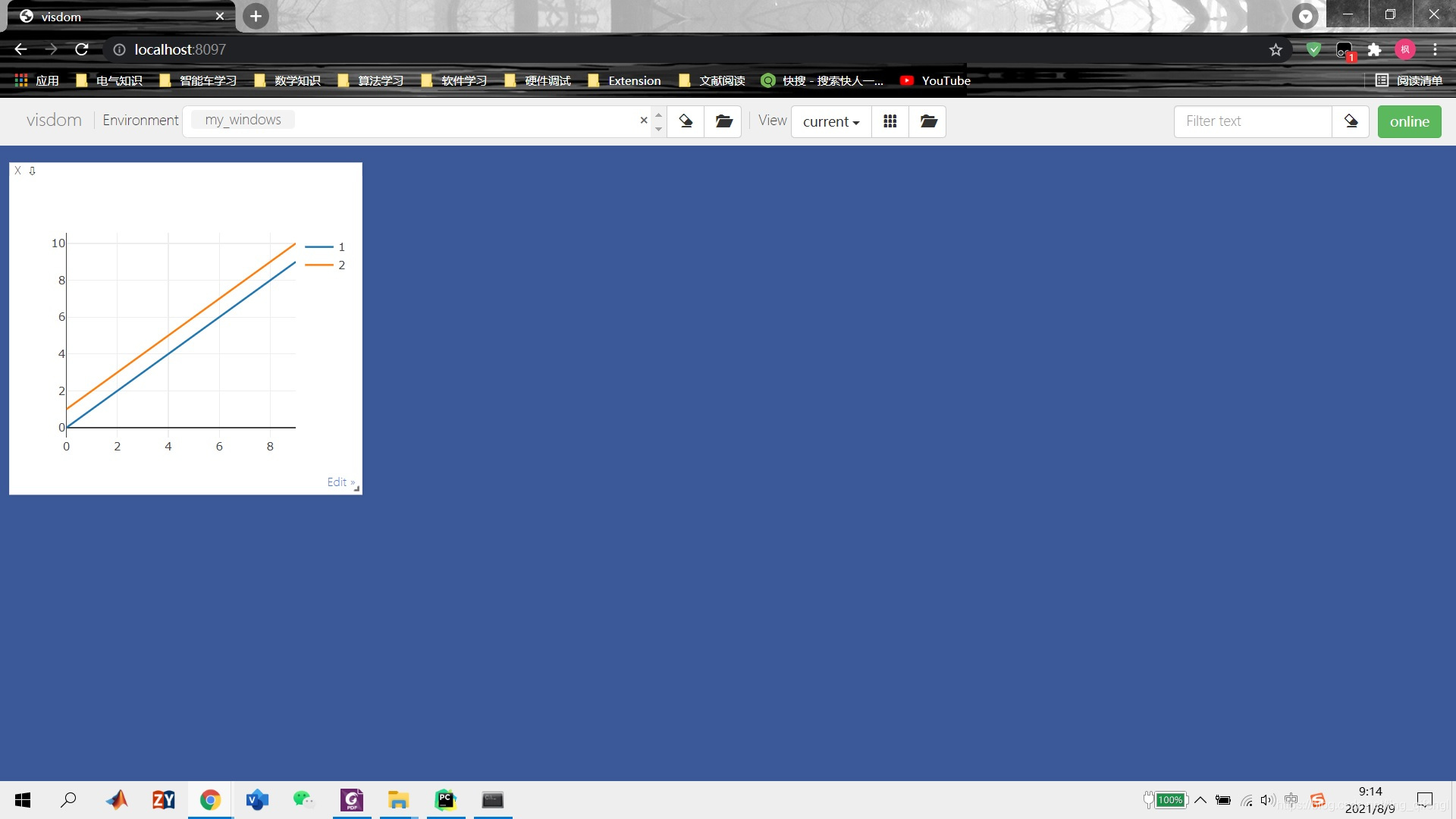 vis = visdom.Visdom(env='my_windows') # 設(shè)置環(huán)境窗口的名稱(chēng),如果不設(shè)置名稱(chēng)就默認(rèn)為main