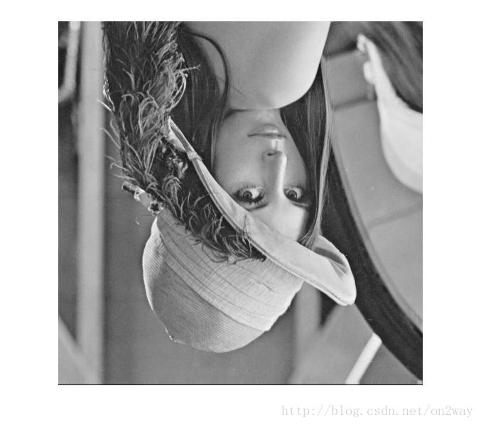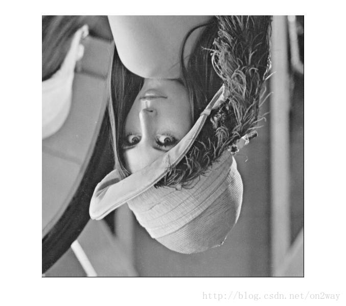 可以看到,分別對圖像擴大和縮小的時候,都是以行和列為1為原點來操作的。如果還是以這個點來進行旋轉(zhuǎn)操作的話,就會非常不協(xié)調(diào)不好看。況且如果了解matlab本身自帶這些旋轉(zhuǎn)、比例操作函數(shù)的話會發(fā)現(xiàn),這些函數(shù)操作原點是圖像的正中心,這樣操作起來后才很好看。那么現(xiàn)在的問題就是如何把圖像的中心作為我們在坐標(biāo)系下認(rèn)為的原點呢?那就是上面講到的三步走了,首先平移中心點至原點,再變換,再平移至中心點就好了。我們需要做的就是確定平移的行與列的長度(平移的長度應(yīng)該是圖像行與列總長度的一半吧,如果是把中心點當(dāng)做原點的話)。基于此修改上述的程序如下:
