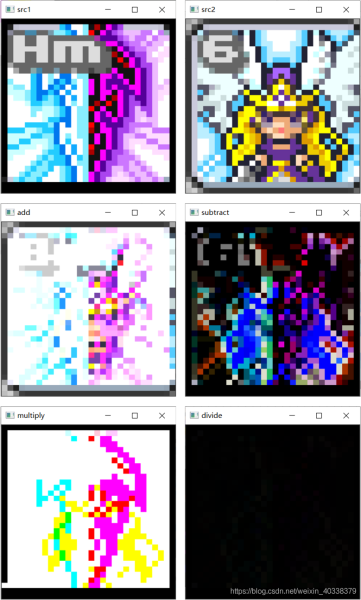 src = cv.divide(src11, src22) # 除 : 圖像對應(yīng)像素值相除,a( > 0) / 0 = 255