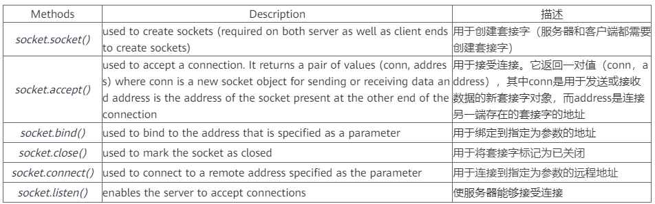 現(xiàn)在您已經(jīng)了解了套接字的概念,現(xiàn)在讓我們看一下Python的Socket模塊: