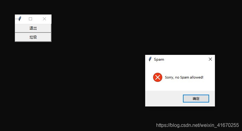 Button(text='垃圾', command=(lambda: showerror('Spam', errmsg))).pack(fill=X)