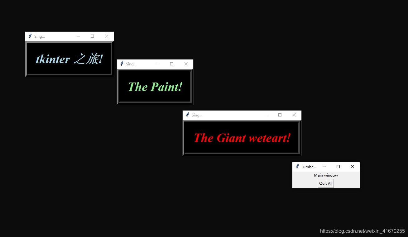 Button(root, text='Quit All', command=root.quit).pack() #終止所有程序