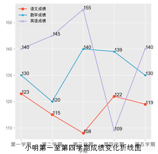 ax.set_title('小明第一至第四學(xué)期成績變化折線圖',fontsize=18,fontweight='bold')
