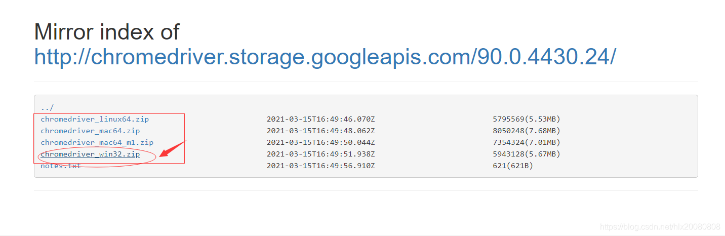 3.2 訪問https://npm.taobao.org/mirrors/chromedriver,點擊進入不同版本的chromedriver下載頁面