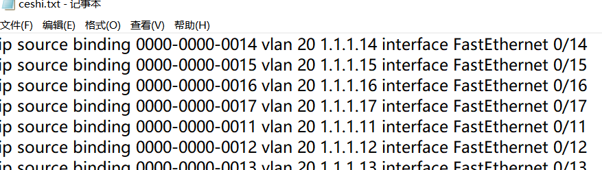 我的學(xué)習(xí)進(jìn)度其實(shí)沒有那么快的,因?yàn)楝F(xiàn)在是網(wǎng)絡(luò)工程師實(shí)習(xí),只有晚上一點(diǎn)時(shí)間和周末有空,所以周一到周天的學(xué)習(xí)進(jìn)度很慢,今天之所以突然跳到通配符是因?yàn)楣ぷ餍枰?,大體講一下我的工作需求:網(wǎng)絡(luò)工程師就是寫腳本然后導(dǎo)入不同的網(wǎng)絡(luò)設(shè)備中,我現(xiàn)在有一份現(xiàn)網(wǎng)正在使用的設(shè)備的命令,需要更換新的設(shè)備,但新設(shè)備跟舊設(shè)備(現(xiàn)網(wǎng)中正在使用的)不是同一個廠家的,導(dǎo)致他們的命令不兼容(知識,大體內(nèi)容是一樣的),所以我需要把舊設(shè)備中的Mac地址啦,ip啦,網(wǎng)關(guān)等全部提取出來并插入到新的命令模式中,現(xiàn)在開始完成上述需求(簡單的,只包含一點(diǎn)關(guān)于IP-MAC綁定的,用于DHCP自動分配ip地址時(shí)可以根據(jù)PC的MAC和VLAN來獲取特定的IP)