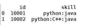 如,將下面表格中的內(nèi)容,對skill字段按照id進(jìn)行分組合并