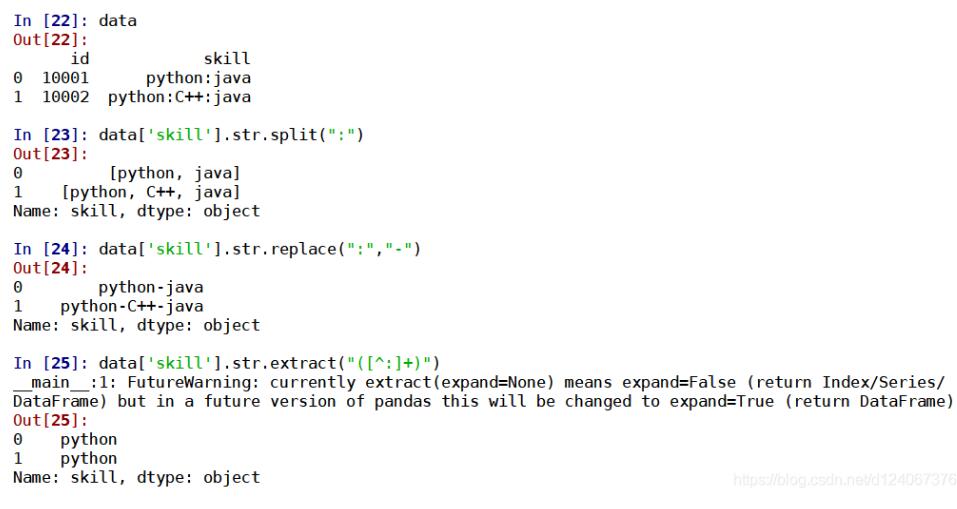 另,數(shù)據(jù)處理時(shí),常常需要將某一列進(jìn)行拆分,分列,替換等,相關(guān)的函數(shù)有str.split()、str.extract()、str.replace().
