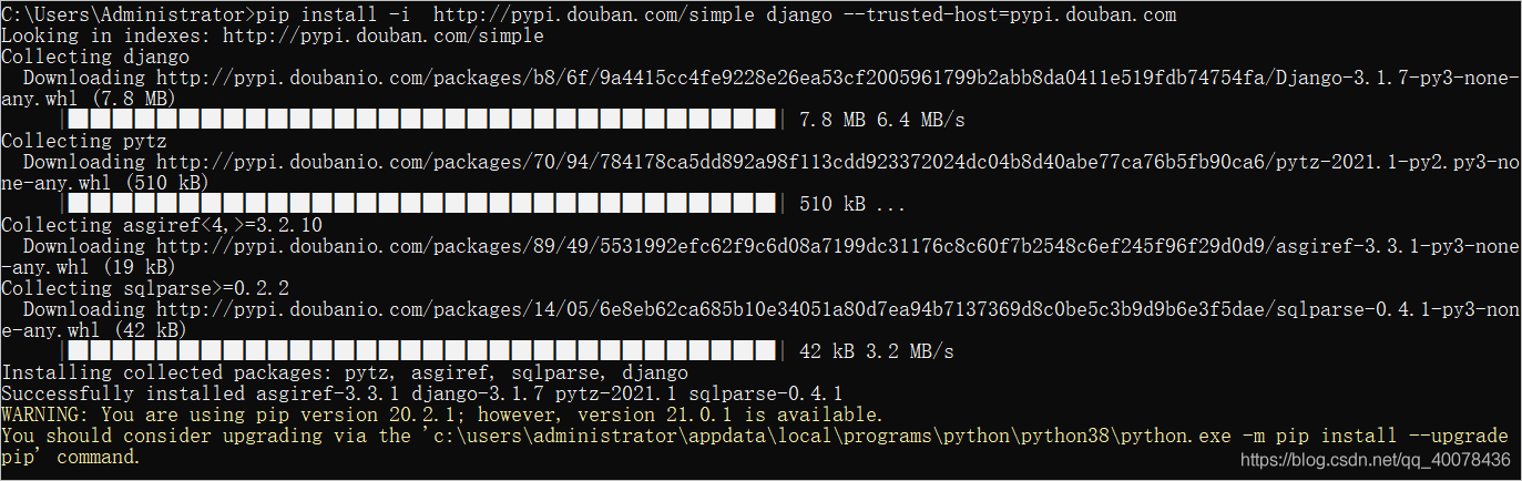 pip install -i http://pypi.douban.com/simple django --trusted-host=pypi.douban.com