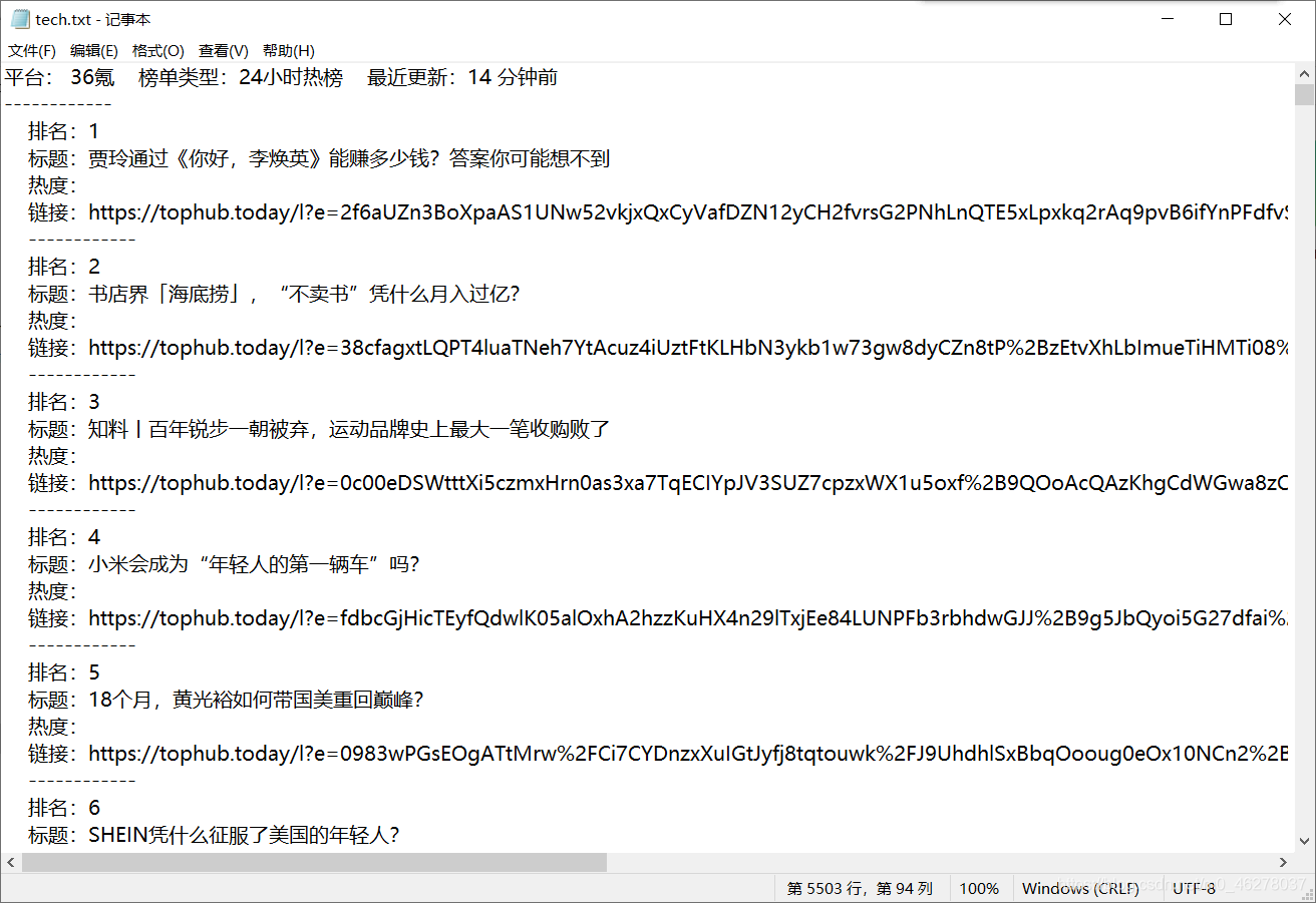 save_txt(tag,output.format(num[h], title[h], hot[h], href[h]))